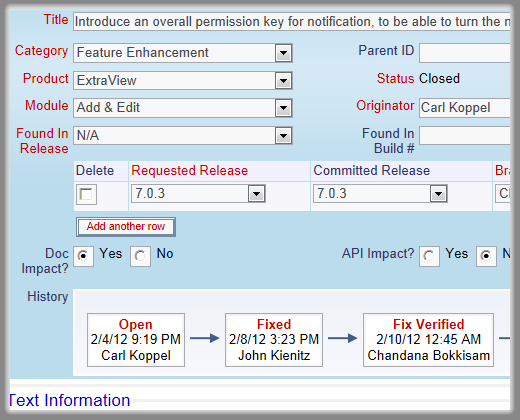 ExtraView offers the perfect platform to centralize interactions with customers, product management and internal developers. ExtraView provides the business user with an intuitive, centralized tracking interface to not only make these requests but allows for the end-to-end process, from submittal, authorization, through fulfillment. For the business, it minimizes cost and latency by orchestrating tasks across several layers within an organization. Requests may be accompanied by images and documents that provide all the specifications for each enhancment. Real-time dashboards and extensive reporting ensure your team is in total control of the process.